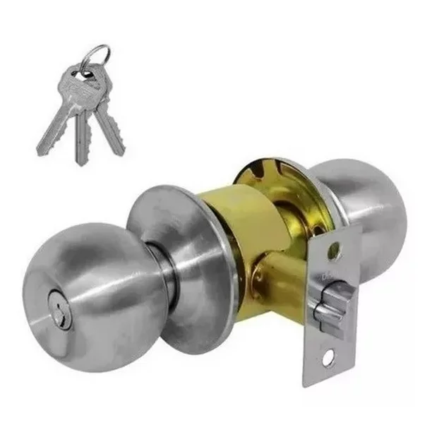 • Perilla de latón para interiores o exteriores, 200 mil ciclos de apertura. Mecanismo Tubular, Seguridad de 5 pernos de latón, Acabado recubierto que alarga la vida de la cerradura, Pestillo reversible para puertas izquierdas o derechas, Back-set (Centro de perilla al canto de la puerta) de 60 mm.