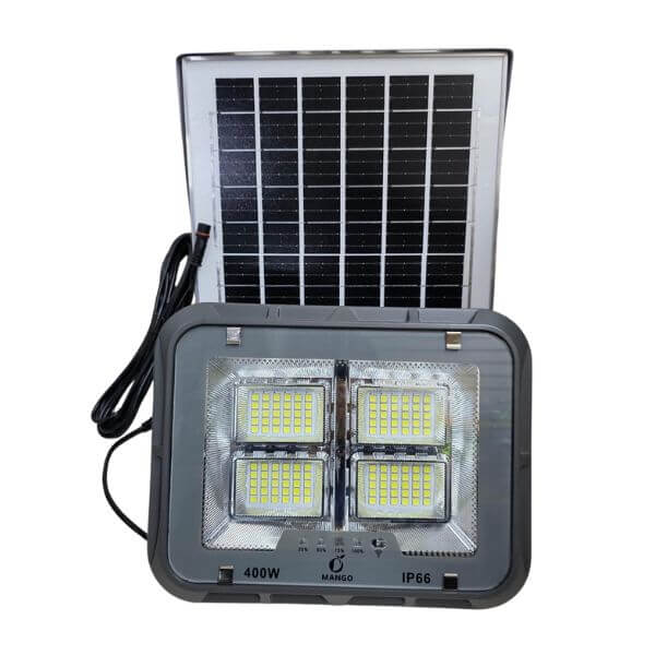 Reflector LED solar de 100W diseñado para iluminación exterior, ofreciendo un equilibrio óptimo entre potencia y eficiencia energética. Utiliza un panel solar para una recarga automática durante el día, brindando luz intensa y gratuita por la noche. Su clasificación de protección IP66 lo hace apto para todo tipo de climas, resistiendo lluvia, polvo y humedad. Es ideal para asegurar la visibilidad y seguridad en áreas exteriores de tamaño mediano.