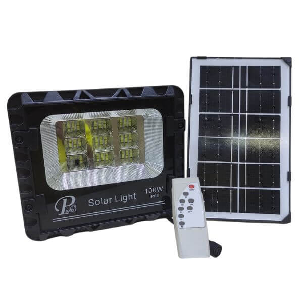 Este reflector solar de 100W con panel fotovoltaico es tu solución todo-en-uno. Potente, autónomo, resistente y eficiente.